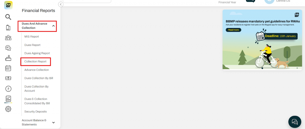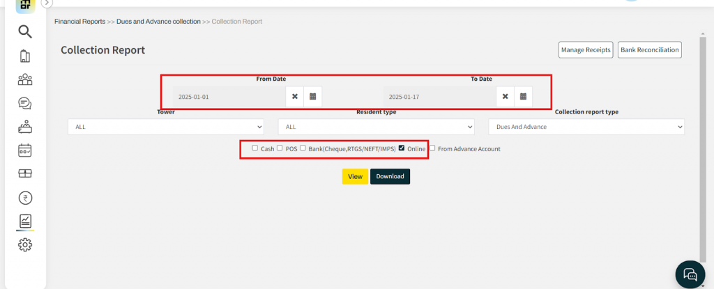 2. Navigate to Financial Report > Collection Report > View/Download.